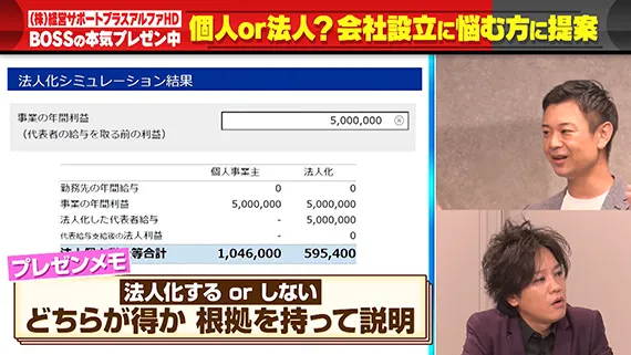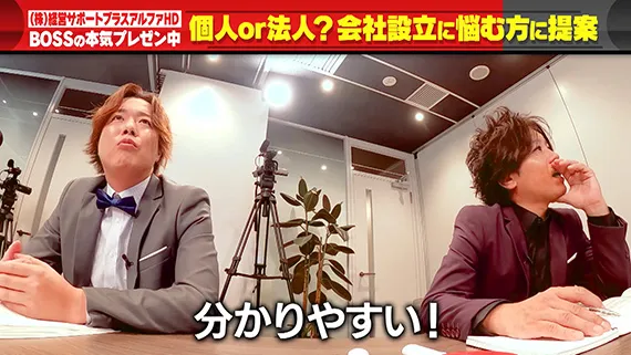 テレビ埼玉「BOSSのプレゼン」にて芸人のぺこぱさんに法人化手続きのプレゼンを行いました。