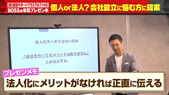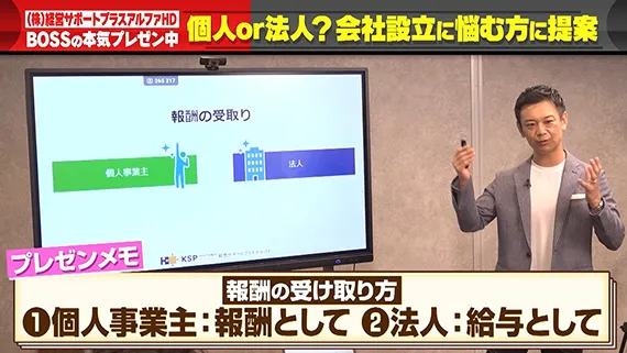 3.テレビ埼玉「BOSSのプレゼン」で法人化手続きのプレゼンを行う